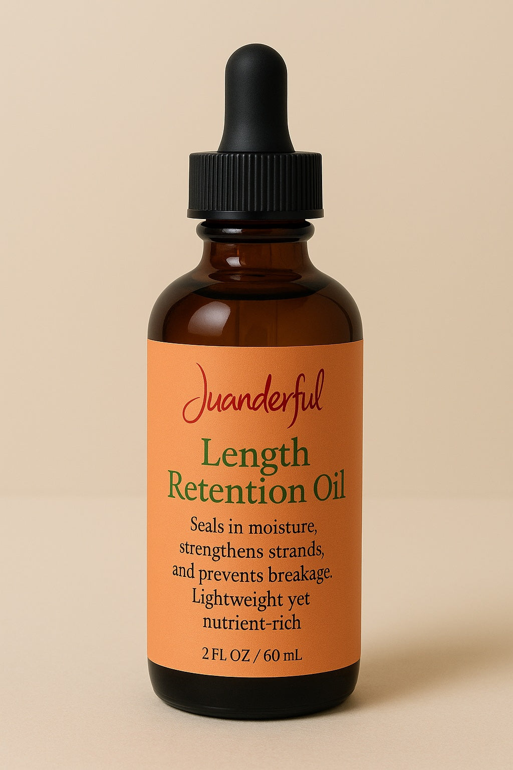 Juanderful Length Retention Oil is your go-to daily strand sealer, formulated to reduce breakage, boost shine, and help you retain the length you’ve worked so hard to grow.